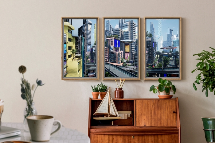 Atmophは、世界各国の撮影風景に加え、2022年3月から本格的にオリジナルCGプロダクションに参入しました。第一弾は、Atmoph独自のCGで白亜紀の恐竜時代を蘇らせた風景を、第二弾では近未来の京都を舞台にしたオリジナルCG世界「新京都」をリリースしました。
