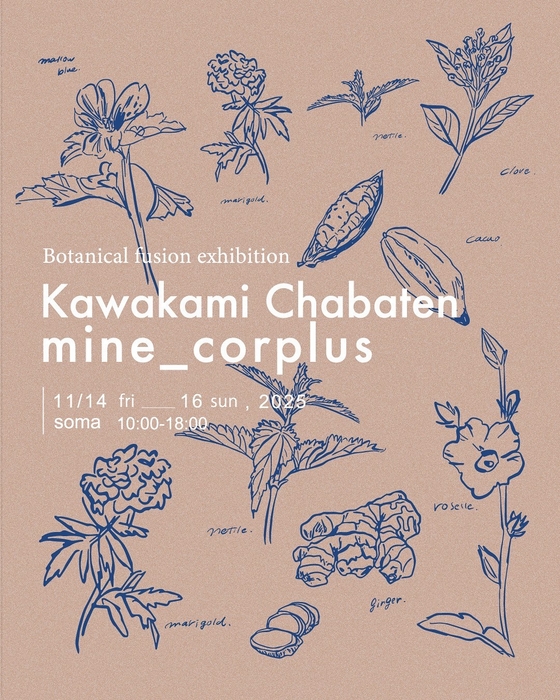 京都をベースに活動する、かわかみ茶葉店とmine_corplusの二人でユニークな展示を開催。布作家の想いを映すように調合したハーブティと、端切れをハーブで染めて再構築した作品を展示販売。植物を愛する二人の感性が響き合う、香りと色彩をお楽しみください。