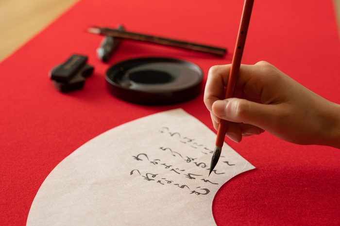 ご当地の文化を体験する「ご当地楽」として、「大人の墨あそび」をおこなっています。山口県の伝統工芸「赤間硯」で墨をすり、芳香を感じ、墨の良さを実際に体験し、扇形の型紙に自身の思いを綴ります。江戸時代、献上品として赤間硯が使われており、原料となる採石用の山は藩主の命があった時のみ採掘がおこなわれていました。長州藩の名産として簡単に手に入れることができなかったこの硯は、粒子が細かく、発色や伸びが良い墨汁を得ることができる為、松下村塾の師でもある吉田松陰も愛用していた、と言われています。