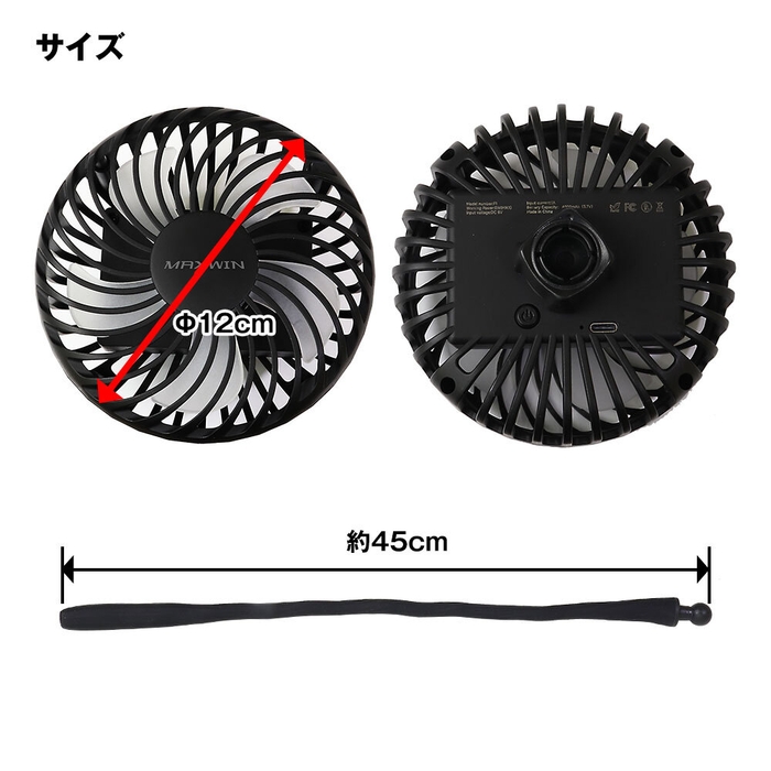 ヘッドレストやアシストグリップなどにも自由自在な設置が可能! バッテリー内蔵で電源の無い後部座席でも使用できる扇風機!
