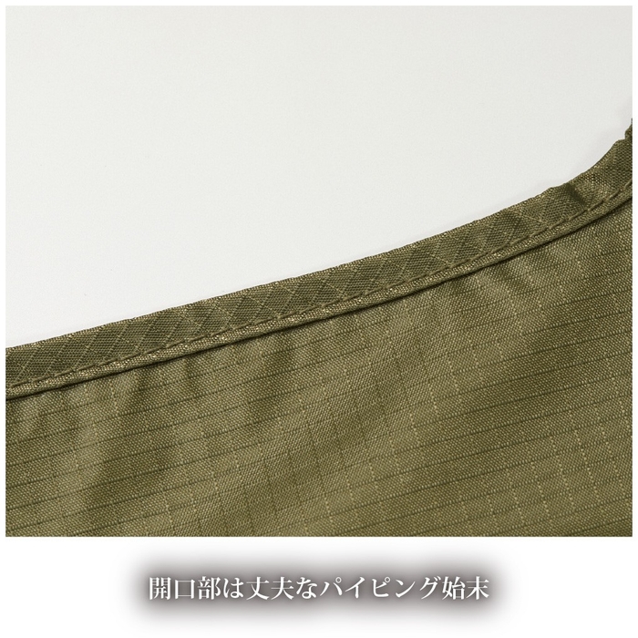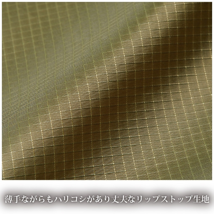 ナイロン生地で作ったシンプルなマルシェバッグ。買ったものを入れるために使うのはもちろん、普段のお出かけでも使える万能アイテムです。トートバックよりも気軽に持てるデザインのため、きれいめなコーディネートの外しとしても◎。マチ付きで物が入れやすく、内ポケット部分に本体を収納すれば、コンパクトに持ち運ぶことができるのもうれしいポイント。糸を格子状に織り込んだリップストップ生地は、薄手でありながら耐久性に優れているため、長く安心して使用することができます。