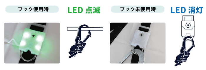 墜落制⽌⽤器具を適正に使⽤している時には、内蔵されたLEDが点滅