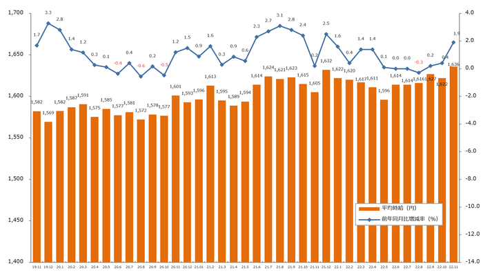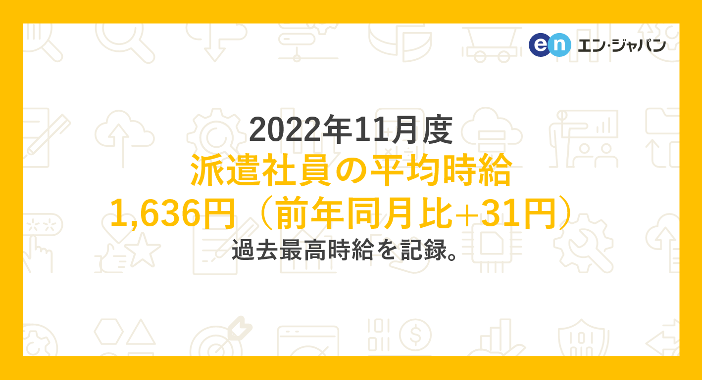 2022年11月度 派遣社員の平均時給は1,636円 過去最高時給を記録。