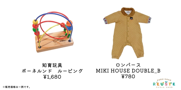 子育て世帯の必需品である抱っこ紐やベビーカー等は、人気ブランドの商品がリユースに見えない品質、リユースならではの価格で手に入り、デザイン性が高いファッションアイテムやこどもの感性を育む知育アイテム等もお求めやすい価格で取り揃えております。