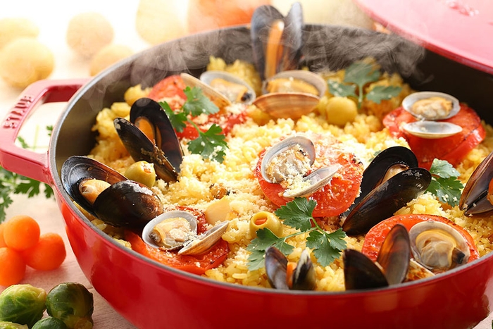生米をムール貝やあさり、魚介の出汁で15分程かけて炊き上げます。火が消えた後、5~10分程しっかり蒸らすことで生まれる、具材の美味しさがしっかり染み込んだお米の美味しさをお楽しみください。