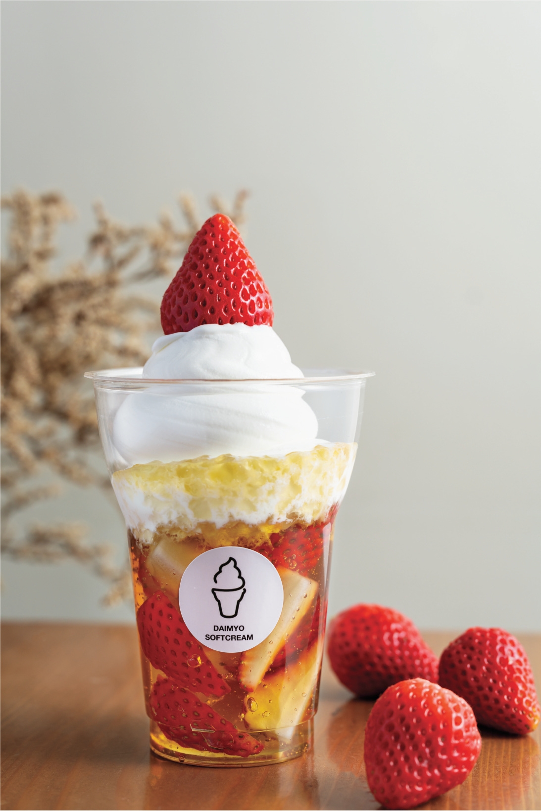 「マシュマロのような可愛いフォルムの、手作り濃厚ソフトクリーム」を提供するソフトクリーム専門店カフェ「DAIMYO SOFTCREAM (ダイミョウソフトクリーム)」(運営:株式会社EFM/本社:福岡県福岡市中央区、代表取締役:杉山 芳文)から、甘酸っぱい旬の苺を使用したスイーツをたくさんご用意いたしました!