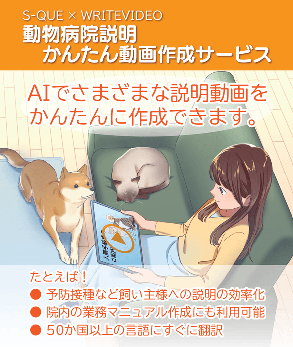 また、AIを使って動物病院向け説明動画を簡単に作成し管理することができる 「動物病院説明かんたん動画作成サービス」 の操作体験も行なっておりますので、お気軽にスタッフまでお声がけください。