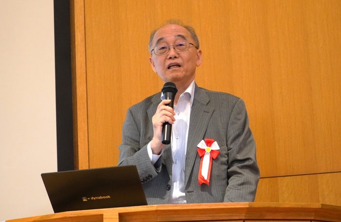 開会挨拶を行ったのはRobiZy代表理事長 佐藤知正(東京大学名誉教授)。「今話題の生成AIが、ロボット産業を盛り上げる鍵になると考えています。日本のロボット関係各社の知識を統合し、AIにインプットすれば、良質なロボットを作る事が可能です。さらにそのデータを相互利用し合うことで、業界全体の活性化にもつながるでしょう。まずはRobiZyが日本のロボット関係者を繋ぎ、産業を盛り上げる役目を果たしたい」と強く語りました。