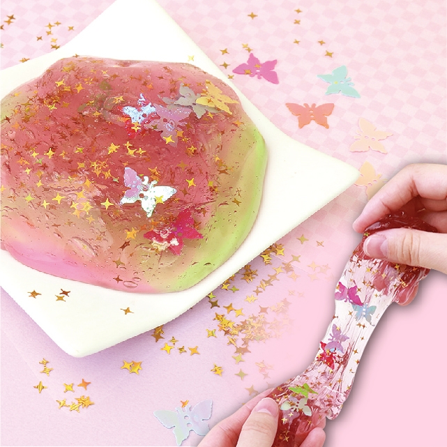 混ぜるだけで雪のような見た目になるラメパーツや、ちょっと大人な蝶をモチーフにした和風パーツなど、あ〜〜子供の頃こんなのがあったらクラスの人気者になれてたかもしれない!なんて思っちゃいました♪