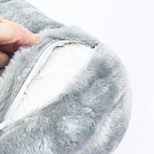 しっかりとしたサイズ感で、思わずギュッとしたくなります。心地の良いあたりで、デスクワーク中の椅子の後ろに入れて腰の負担を軽減もできます。小さいお子様のかわいい枕としてもお使いいただけますよ。まるでトトロのお腹で寝ているような気分になれるかも!!? サイズ:36cm×43cm×9cm 素材:カバー:ポリエステル100%、 本体:(側生地)ポリエステル100%、中材:低反発ウレタンチップ