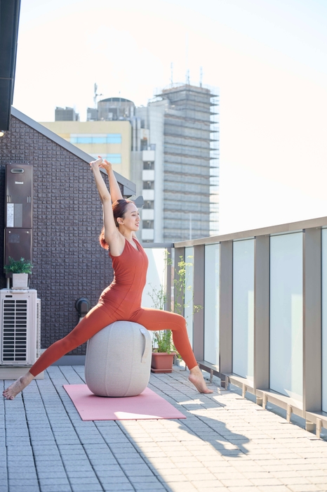 通常のバランスボールと同様に体幹とバランス感覚を鍛えるエクササイズはもちろんのこと、カプセル型を活かし、背中や脇のストレッチで筋肉をケアしたり、脚を休める脚枕やオットマンとしても。