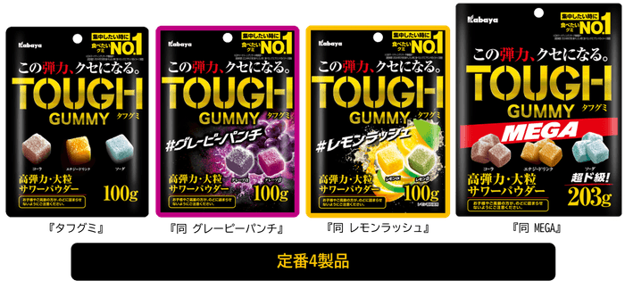 『タフグミ』は、噛み応えのある独自の高弾力食感とサワーパウダーの刺激が生む“やみつきになるおいしさ”が特長で、累計販売個数は1億個を突破※1しました。特に主力製品の『タフグミ』は2024年度グミ市場販売金額No.1※2になり、成長著しいグミ市場において2年連続で首位を獲得※3するなど、“グミのおいしさのど真ん中”を体現する製品です。