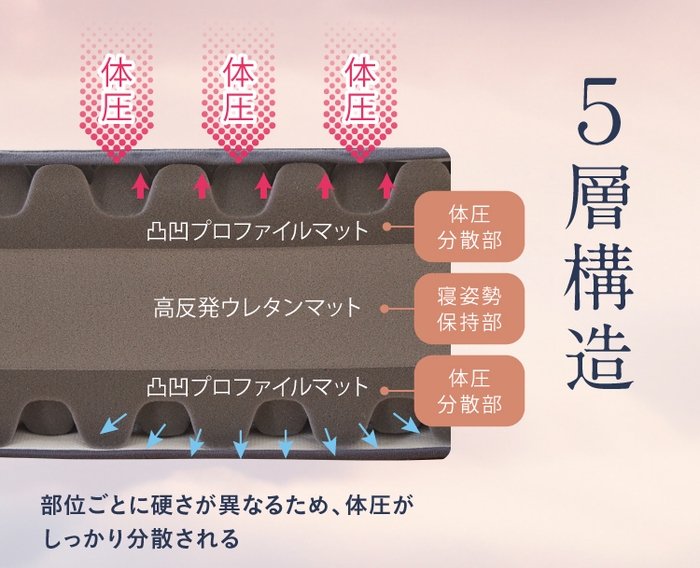 この2種類のマットからなるこだわりの5層構造を形成。