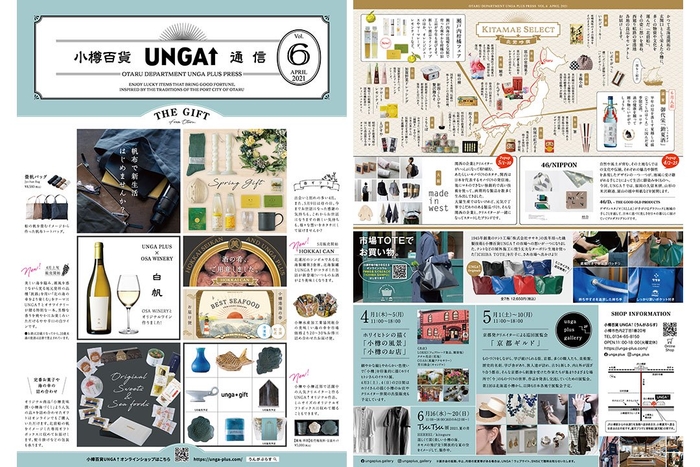 小樽百貨UNGA↑ならではの小樽にちなんだ商品づくりと、北前船寄港地からセレクトした季節の商品情報が満載です。