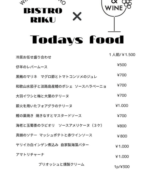 ぜひこの機会に、BistoRIKUの新たな挑戦と、&WINEの温かな空間をお楽しみください。