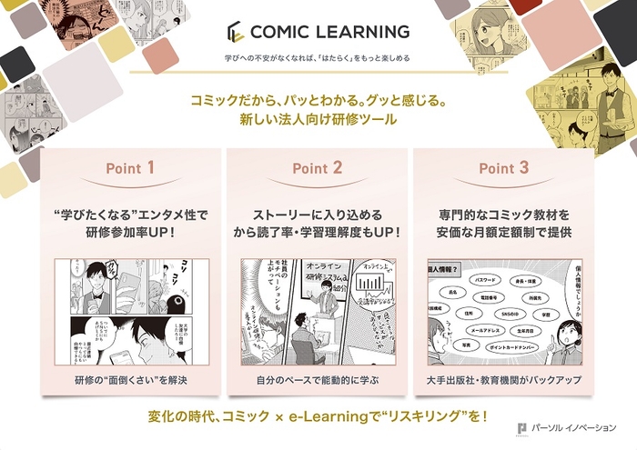 “学び”の不安を解消し組織をアップデート / 「はたらく」上での不安を払拭するサービス、『ライフナレッジ』、『hanaseru』、『コミックラーニング』出展