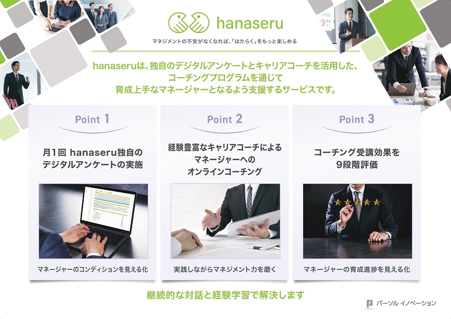 総合人材サービス、パーソルグループのパーソルイノベーション株式会社(本社:東京都港区、代表取締役社長:長井 利仁)は、DX EXPO/新しい生活様式 EXPO 実行委員会(東京都港区、エバーリッジ(株)内 代表取締役:石山 文彦)が運営する企業・店舗のDX化/働き方改革を促進する展示会 『DX-デジタルトランスフォーメーション- EXPO』 へ、当社の新規事業プログラム「Drit」から生まれた『ライフナレッジ』・『hanaseru』・『コミックラーニング』の3サービスを合同で出展することを決定しましたのでお知らせします。当社の“はたらく上での不安”を払拭するサービスを通して、企業のDX推進に寄与してまいります。