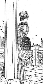 この頃の麹町区は、江戸時代の武家屋敷跡に、学校・軍関連施設をはじめとする公共施設や皇族・華族などの上流階級の邸宅、さらには大使館・教会・ミッションスクールなどが立てられていました。優雅であり、かつ国際色豊かな街の雰囲気に感化され、麹町区ではこのようなトレンド感度の高い女性が多く見られていたのかもしれません。