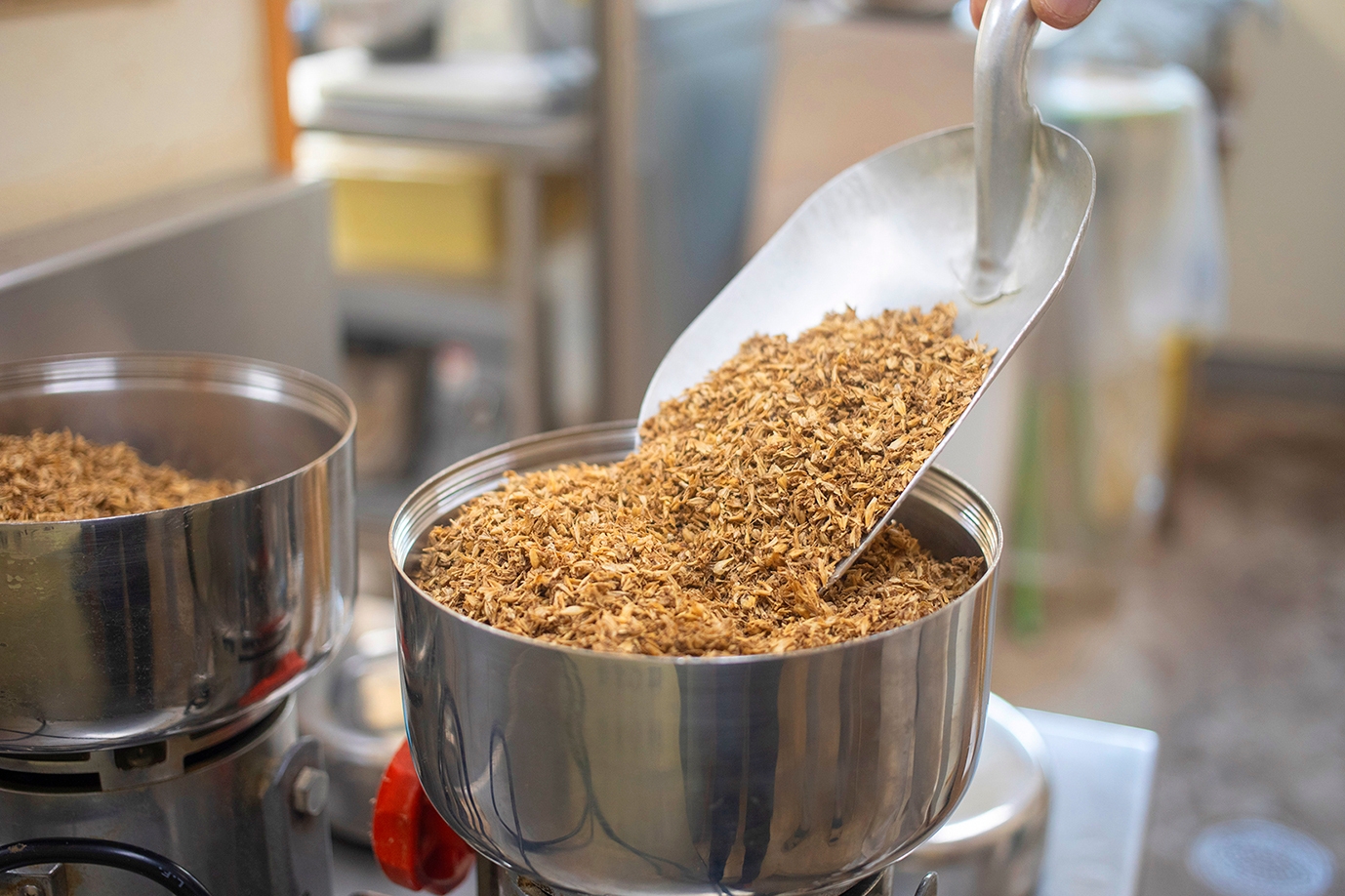 麦芽粕の乾燥から製粉までは、和歌山市岩橋のはぐるま共同作業所「和の杜(就労継続支援B型)」でおこなっています。