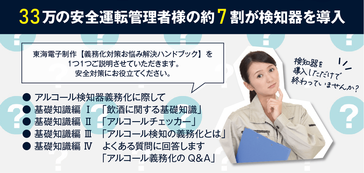 安全運転管理者様、検知器を導入しただけで終わっていませんか?アルコール検知器義務化に関する基礎知識を詳しくご説明いたします。