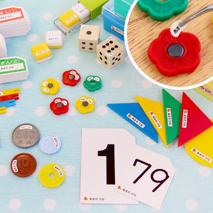 大量の名前つけが大変と有名な小学校の算数セット。このシールがあればかなりの時短になります。追加できるピンセットも使いやすいと好評です。