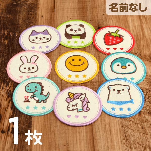 1つずつお名前を変えられるので、ご兄弟やお友達と分け合えます。大きさも5サイズから選ぶことができ、お名前シールと共通デザインで揃えてマイマークとしてお使いいただくのもオススメです。