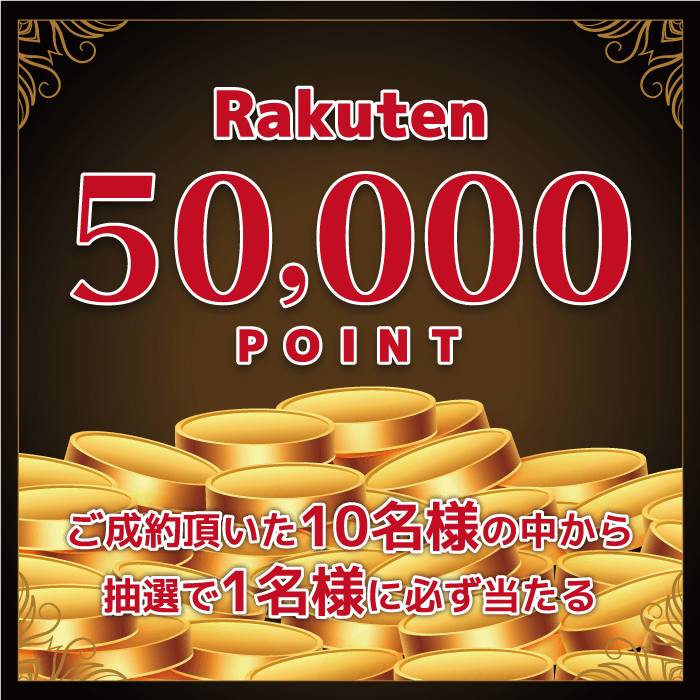 期間中にご成約いただくと抽選で10人に1人、50,000楽天ポイントが当たります!