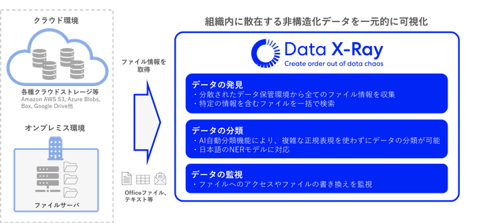 Data X-Rayは以下の機能により、様々なデータソースに散在するファイルを可視化・保護します。
