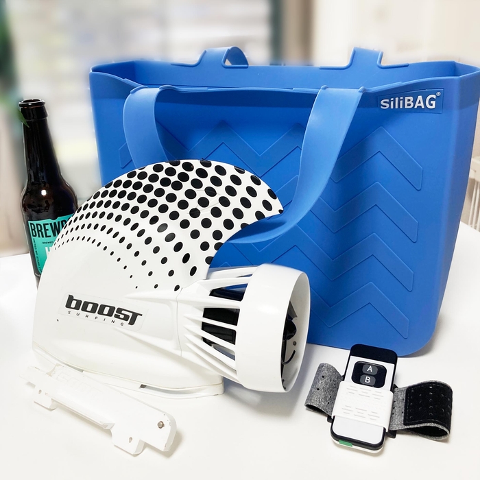 ロサンゼルスにあるBoost Surf(ブーストサーフ)社により、2020年、米国のクラウドファンディング「kickstarter」で販売中の電動アシスト型フィンです。サーフィンの課題を「パドリングや波をキャッチする難しさ」と認識していた彼らが、同僚のサーフィンでの怪我を切っ掛けに構想・開発したガジェットです。長時間のパドリングで疲れてしまう、結果、良い波を上手につかむことができないといった理由からサーフィンを諦める人も存在し、波乗りの難しさを感じる人も多いのが現状です。グロウ代表の斎藤も同じ課題を感じていた一人で「Boost Fin(ブーストフィン)」を自身も初めて体験し「これならサーフィンの裾野が広がるのでは」と思い、Boost Surf社と協議の上、日本での代理店の契約を締結。このたびクラウドファンディングにて販売を開始する運びとなりました。