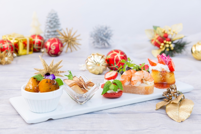 クリスマスシーズンを彩る華やかなメニューを、アフタヌーンティースタイルでお楽しみください。