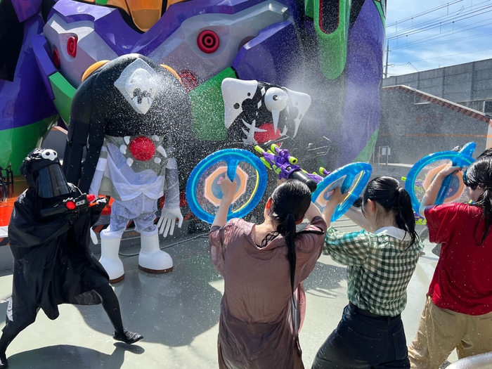 暑い日中は、巨大使徒2体によるスプラッシュ攻撃でびしょ濡れになるライブショー