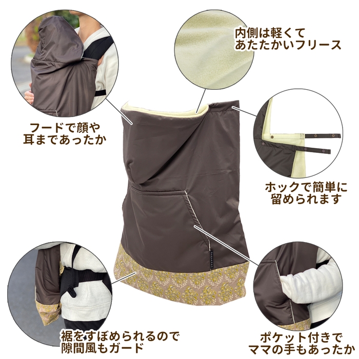 表生地は撥水効果のある高密度な生地を使用しているので、雨や風でも赤ちゃんをしっかりガード。