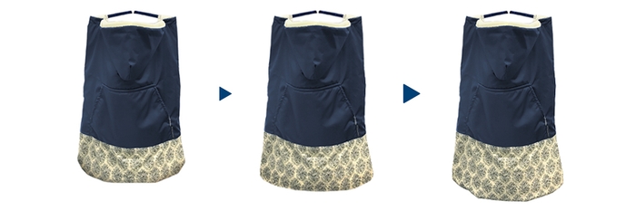 裾部分はホックで袋状に変形し、さらに成長や用途に合わせて