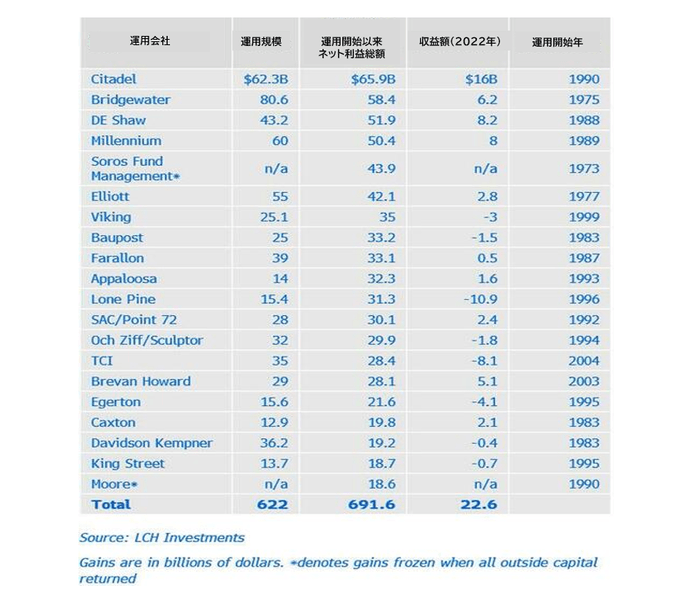 2022年世界ヘッジ・ファンド利益番付