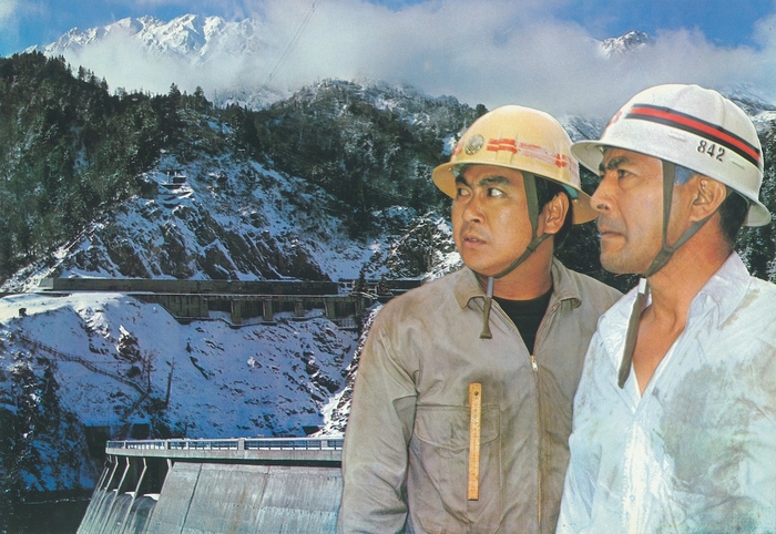 あらすじ:関西電力は、黒部川上流に発電所を建設するため、太田垣社長総指揮の下、社運をかけて黒四ダムの工事を行うことになった。岩岡剛(石原裕次郎)はトンネルを掘るためにどんな犠牲も省みない父に反抗し、家を出て設計技師となっていたが、工事の現場を訪れた剛は、責任者の北川(三船敏郎)の熱意にほだされ、体の弱くなった父のかわりにトンネル掘りの指揮を執る。しかし工事が進むにつれて犠牲者は増え、山崩れと大量の水がトンネルを襲い、剛らはダム工事の難しさを痛感する。やがて、莫大な資金の投入と技術陣の科学的な処置の甲斐があり難所を突破。剛は北川の娘・由紀と結婚。翌年2月、北アルプスを抜いてトンネルが開通する。その瞬間を躍り上って喜ぶ労務者たちの中で、北川は由紀の妹、娘・牧子の死を知らせる電報が届き、激しく慟哭した。数年後、彼は完成したダムの堂々たる姿に無限の感動を覚える。