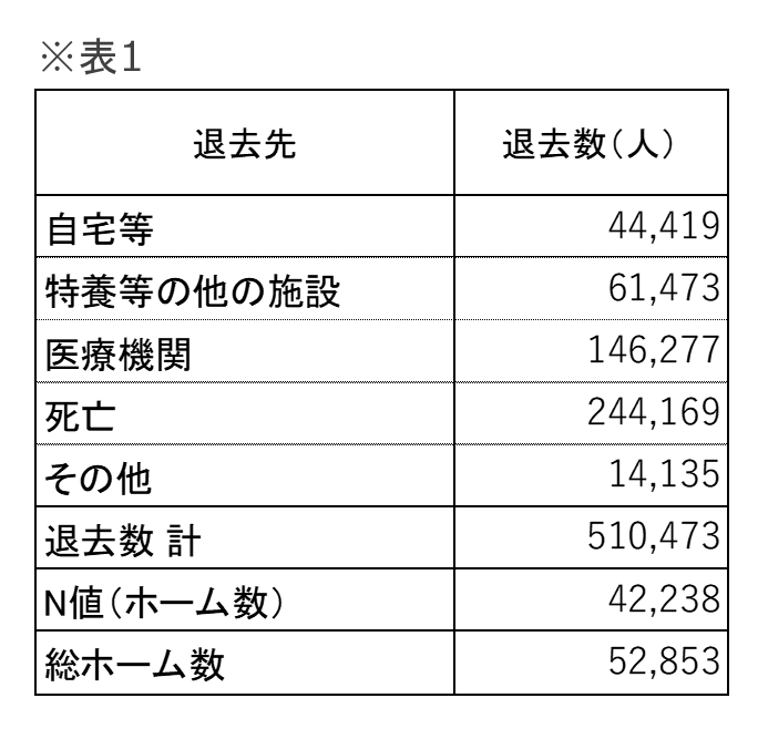 - 退去先の全国集計【退去者の約半数(24万人)が施設内で亡くなる】