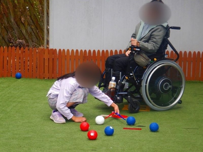 ボッチャは、ジャックボールと呼ばれる白い球に赤・青それぞれの色のボールを複数回投げて近づけ、ゲーム終了時に自分のチームの色のボールをより多く近づけられたほうが勝つというシンプルなルールで、年齢や性別、障がいのあるなしに関わらず、誰もが一緒に楽しめるスポーツです。