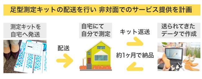 コロナウイルスの影響が本格化してきた、2020年2月のサービス開始時には在宅での3D計測をここまで早く展開する予定ではありませんでした。しかし、世の中の変化に対応するために、特別な訓練(講習)無しで簡単に3D計測できる仕組みを構築しました。この仕組みを使い、一気に全国へ商圏を広げるとともに、B2B2Cのビジネスモデルでのオーダーメイドシューズの提供の準備も行っております。在宅での3D計測出来る仕組みを、全国の協力会社様の店舗などへ配らせて頂き、協力会社様のブランドもしくは当社のブランドにてオーダーシューズを一般の消費者様向けに提供させて頂き、多くの靴で悩んでいる皆様にHappyを提供していきたいと考えております。