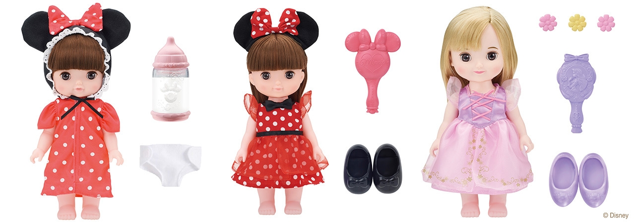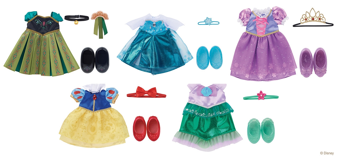 『レミン&ソラン』はディズニーのお世話人形シリーズです。ミルクをあげたり、寝かしつけたり、お世話遊びが楽しめることに加え、「ディズニープリンセス」のドレスへの着せ替え遊びが楽しめることが特長です。着せ替えの「ディズニープリンセス」のドレス(別売り)は細部までこだわったデザインで、「アナ」「エルサ」「ラプンツェル」「白雪姫」「アリエル」の5種類を展開。靴とアクセサリーがセットになっています。