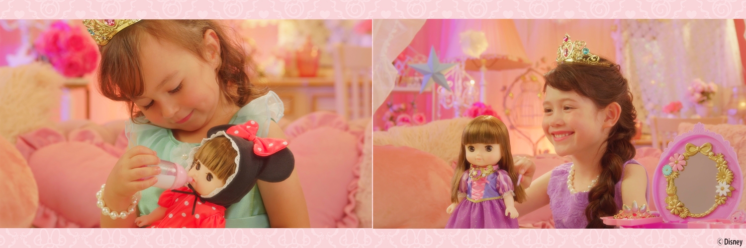 今回のリニューアルでは、お人形とお子様が一緒につけられる2WAY仕様のアクセサリーも付属。お子様自身もプリンセス気分を味わえます。1.5才のお子様から、成長に合わせて長くいっしょに遊ぶことができる、そんなお人形です。