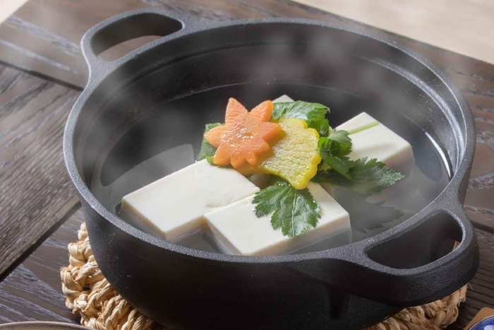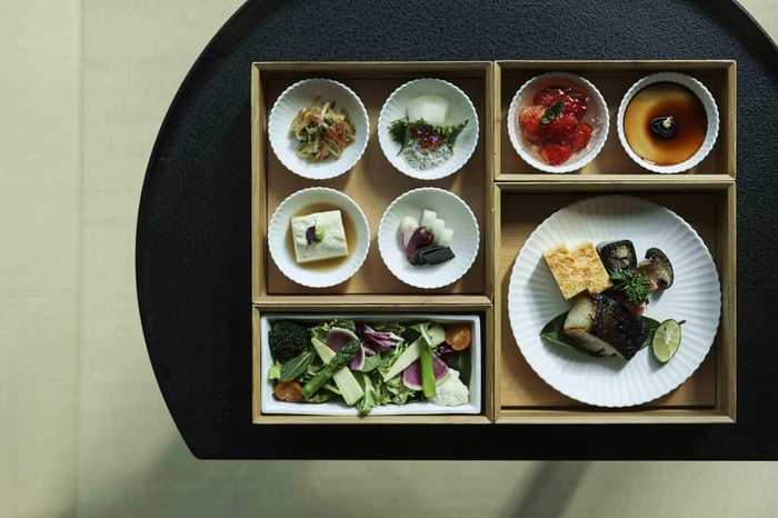 本プランでは朝食と夕食をお重仕立てで、提供します。夕食のメインは牛肉を使用したちらし寿司です。醤油や酒、みりん、昆布を使用した幽庵地で牛肉に味付けをし、しっかり染み込むよう低温で調理します。お肉の優しい味わいと、いくらや酢飯が重なり合って口の中に広がる一品です。シンプルなお重を開けると、鮮やかで華やかなお料理が目の前に並ぶので、味わいも見た目も楽しめます。客室で提供するので、プライベートにゆったりとした食事の時間を過ごせます。また、朝食は本プラン限定の「湯やっこ」をメインとした和食です。湯やっこは、煮立たせた葛湯に豆腐を入れた鍋料理で、葱や大根おろしとともに味わいます。江戸時代から伝わる豆腐料理の一つで、「白米」「大根」「豆腐」の白い食材は江戸の「三白」と呼ばれています。シンプルながらしっかりとした味わいを感じられ、身体が温まります。
