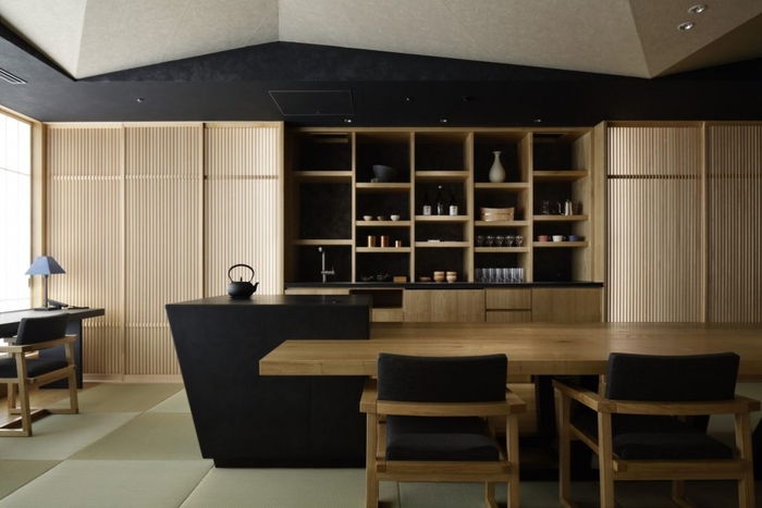 各客室階の宿泊者のみが利用できる「お茶の間ラウンジ」は、セミプライベートなスペースで、24時間自由に利用できます。畳続きの客室から自由に行き来でき、居間のようにくつろげる空間です。
