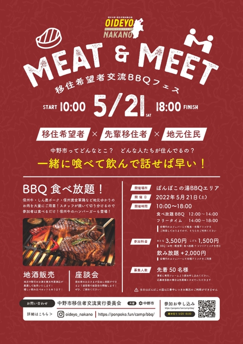 【一緒に喰べて飲んで話せば早い!】移住希望者交流BBQフェス MEAT&MEET【長野県中野市】