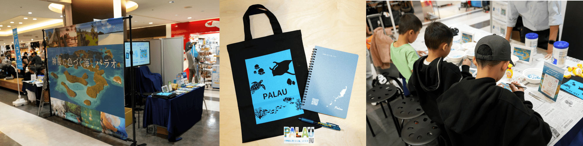 東京/成田-パラオ間の直行便の就航に合わせ、10月28、29日は成田空港内の第1ターミナル内に「パラオ・ブース」を設置。パラオの魅力や、手つかずの自然の素晴らしさを、ブースを訪れた人たちに伝えました。この特設ブースでは、パラオ政府観光局のInstagram公式アカウントをフォローいただいた方に、その場でパラオ関連のノベルティグッズがプレゼントされました。パラオのロゴ入りペンやエコバッグ、ステッカーなどの限定グッズは、成田空港を訪れた観光客にも大好評でした。