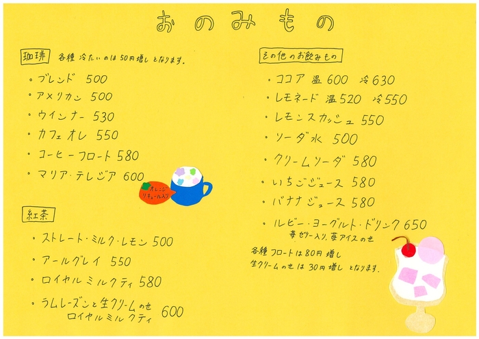 人気の理由は、個々のメニューが精巧に作り込まれている点です。一番人気のコスモパフェはグラス底のソーダを小宇宙に見立て、さくらんぼでスターロード商店街の星を表現しました。パフェの大気圏を突破した瞬間、美味しさが更に増幅します。こだわりの生クリームが軽いテイストでしつこくなく、ババロア・ロワイヤル、ロイヤルミルクティなど、他にも人気の生クリームメニューが提供されております。
