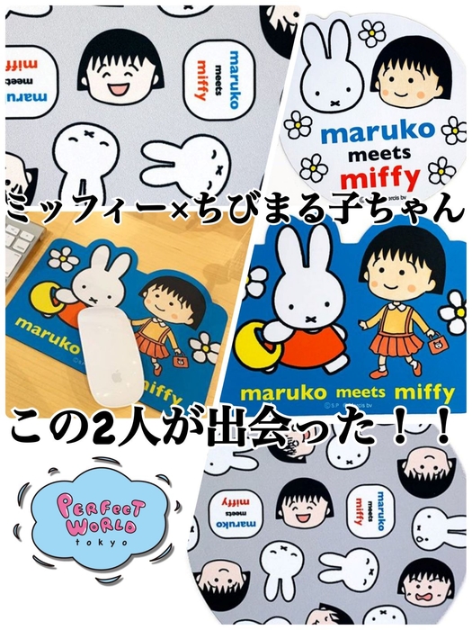 ちびまる子ちゃんとミッフィーが出会った。maruko meets miffyシリーズ!ミッフィー×ちびまるこちゃんの神コラボが実現しました♪いろんなアイテムがある中で、今回は可愛すぎるマウスパッドをピックアップ!ずっと使っていたくなるようなそんな一品です。
