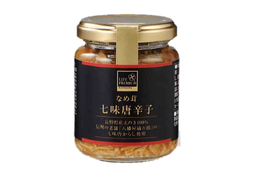 長野県産えのきと、信州の老舗「八幡屋礒五郎」の七味唐からしを使用。冷たいお蕎麦とも相性抜群。