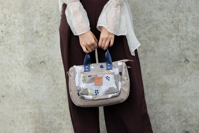 外側の生地は、はっ水加工がされており、折りたたみ傘やコスメなどの収納にピッタリ。