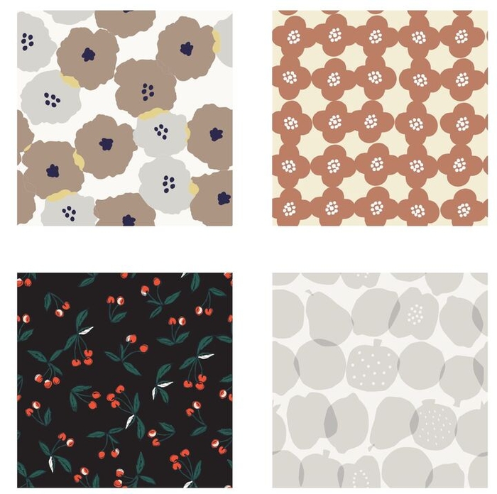 ベージュ(ピオニ)、グレー(フルーツ)、ブラック(チェリー)、オレンジベージュ(カメリア)