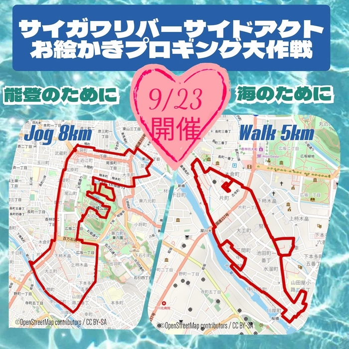 ほくりくGPSアート部(所在地:石川県金沢市、代表:石川 基)は、令和6年9月23日(月)に金沢市の「サイガワリバーサイドアクト」(犀川河川空間利活用社会実験)のイベントとして、プロギング(※)した軌跡がアートとなる「リバーサイドアクト お絵かきプロギング大作戦」を実施します。